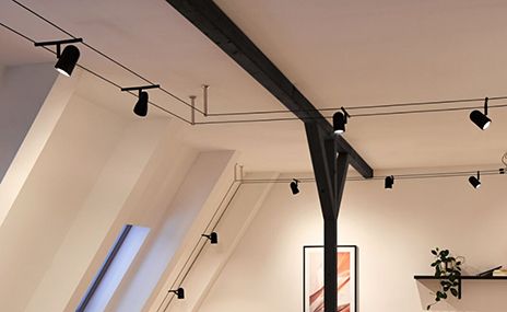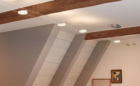 Τα συστήματα καλωδίων, τα συστήματα ράγας ή οι εύκαμπτοι προβολείς είναι ιδανικά για κεκλιμένες οροφές, καθώς τα συμβατικά φωτιστικά οροφής δεν είναι πάντα εύκολο να εγκατασταθούν σε αυτή την περίπτωση. Οι φωτιστικά οροφής είναι επίσης μια επιλογή για δωμάτια με κλίση. Δημιουργούν μια ομοιόμορφη αίσθηση φωτός χωρίς την ανάγκη πολύπλοκης εγκατάστασης. Εξοπλισμένο με βραχίονα ανάγνωσης, έχετε επίσης ένα ευχάριστο φως ανάγνωσης στη διάθεσή σας.