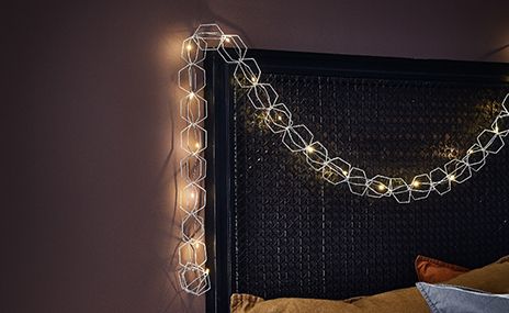 Λωρίδες LED, προβολείς και φώτα νεράιδα ως εντυπωσιακά φώταΠροσθέστε χαρακτήρα στην κρεβατοκάμαρά σας με Akzentlicht. Λωρίδες LED πίσω από τα έπιπλα παρέχουν μια ζεστή λάμψη, όπως και οι λωρίδες φωτός κάτω από το κρεβάτι. Εξοπλισμένο με ανιχνευτή κίνησης, έχετε ένα ευχάριστο νυχτερινό φως για να πηγαίνετε στο μπάνιο. Το διακοσμητικό φωτιστικό στοιχείο για την κρεβατοκάμαρα είναι τα φώτα νεράιδα. Φέρνει τον απόλυτο ρομαντισμό στα δωμάτια χαλάρωσης - με διαφορετικά μοτίβα, χρώματα και σχήματα που ταιριάζουν στο στυλ σας, για παράδειγμα με λαμπτήρες πυράκτωσης για μια ρετρό πινελιά. Ένας άλλος τρόπος για να δημιουργήσετε ένα παιχνιδιάρικο και διακοσμητικό σχέδιο είναι η χρήση προβολέων και σποτ, τα οποία μπορείτε να κατευθύνετε προς αισθησιακές διακοσμήσεις ή ένα μεμονωμένο σχέδιο τοίχου - ιδανικά χαμηλωμένα για άνετες βραδινές ώρες. Αυτά τα αποτελέσματα μπορούν να συνδυαστούν πολύ καλά με έξυπνες λύσεις.