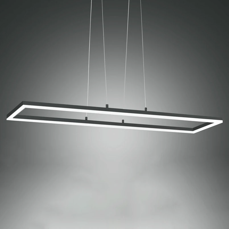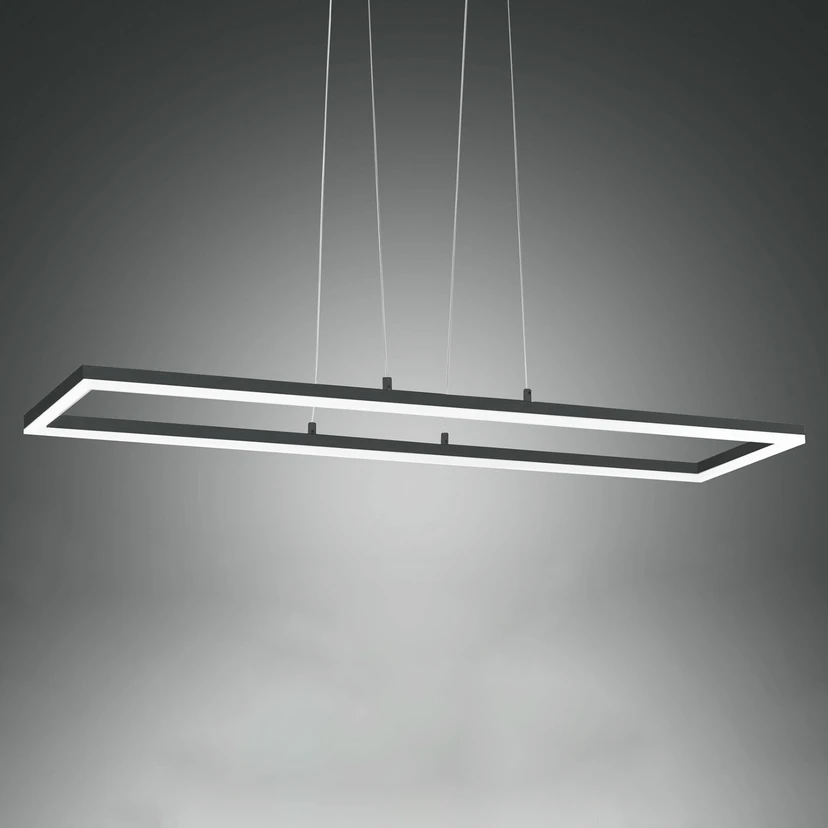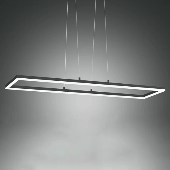 Γωνιακό κρεμαστό φωτιστικό Bard LED σε ανθρακί χρώμα Το κρεμαστό φωτιστικό Bard LED από την Fabas Luce είναι κατασκευασμένο από υλικά υψηλής ποιότητας και εκπέμπει ένα διακριτικό, ζεστό λευκό φως. Χάρη στον διακριτικό σχεδιασμό του, το φωτιστικό πλαίσιο με δυνατότητα dimmable μπορεί εύκολα να ενσωματωθεί σε διάφορους εσωτερικούς χώρους και στυλ διαβίωσης. Το ορθογώνιο φωτιστικό πλαίσιο είναι προσαρτημένο σε διακοσμητική ανάρτηση καλωδίου και τοποθετημένο σε μεταλλικό πλαίσιο. Οι ενσωματωμένες λυχνίες LED κάτω από το μεθακρυλικό κάλυμμα μπορούν να ρυθμιστούν ανάλογα με τις ανάγκες. Ο λεπτός σχεδιασμός, η υψηλή φωτεινή απόδοση των LED και η μοντέρνα κατασκευή επιτρέπουν τον βέλτιστο φωτισμό του περιβάλλοντος και καθιστούν το κρεμαστό φωτιστικό ένα αισθητικό αξεσουάρ σε μια μεγάλη ποικιλία χώρων διαβίωσης.