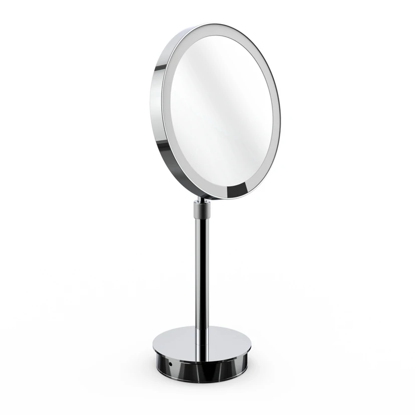 Κοσμητικός καθρέφτης βάσης LED Just Look Plus SR 7X με απεριόριστη ρύθμιση φωτισμού, ρυθμιζόμενο χρώμα φωτός, με αισθητήρα Ο κοσμητικός καθρέφτης βάσης LED Just Look Plus SR 7X χαρακτηρίζεται από τον λεπτό και μοντέρνο σχεδιασμό του. Η επταπλάσια μεγέθυνση σε συνδυασμό με το απείρως ρυθμιζόμενο χρώμα φωτός επιτρέπει τη βέλτιστη όραση. Ο Just Look Plus SR 7X είναι εξοπλισμένος με αυτόματο αισθητήρα που μπορεί να ενεργοποιηθεί και να απενεργοποιηθεί μέσω ενός διακόπτη. Αυτό ενεργοποιεί το φως όταν πλησιάζετε τον καθρέφτη και το σβήνει ξανά αυτόματα μετά από 15 δευτερόλεπτα όταν απομακρύνεστε από τον καθρέφτη. Το φως LED του καθρέφτη ματαιοδοξίας είναι επίσης απείρως ρυθμιζόμενο, καθιστώντας το κατάλληλο για χρήση σε διαφορετικές συνθήκες φωτισμού. Η δυνατότητα ρύθμισης του ύψους σε συνδυασμό με την περιστρεφόμενη και ανακλινόμενη επιφάνεια του καθρέφτη επιτρέπει την ατομική χρήση του καθρέφτη - περιλαμβάνει επαναφορτιζόμενη, αντικαταστάσιμη μπαταρία - περιλαμβάνει καλώδιο φόρτισης USB και προσαρμογέα δικτύου - η επιφάνεια του καθρέφτη μπορεί να περιστραφεί και να πάρει κλίση - το ύψος ρυθμίζεται από 38-44 cm