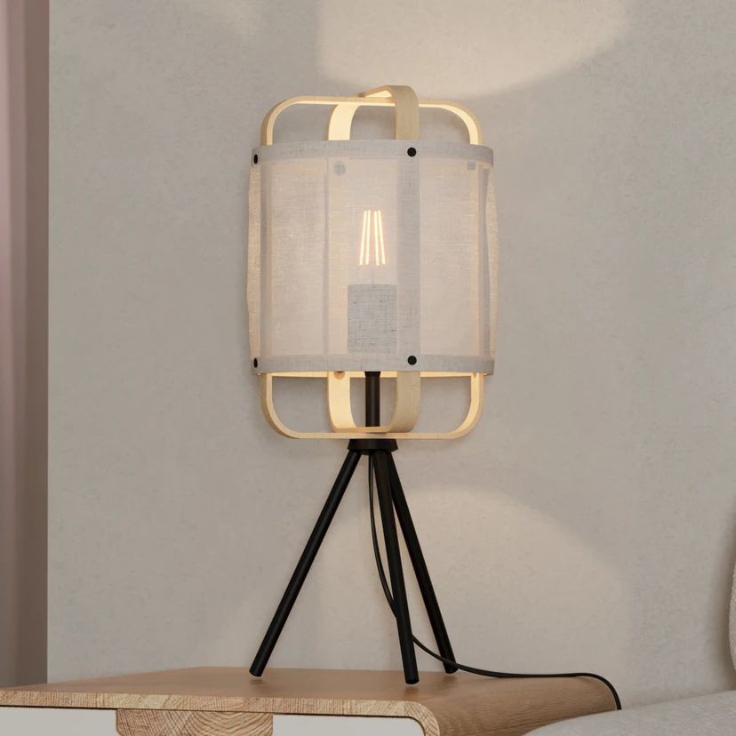 Εμφάνιση περισσότερων εικόνων Επιτραπέζιο φωτιστικό Surfleet με σκιά από μπαμπού / λινό