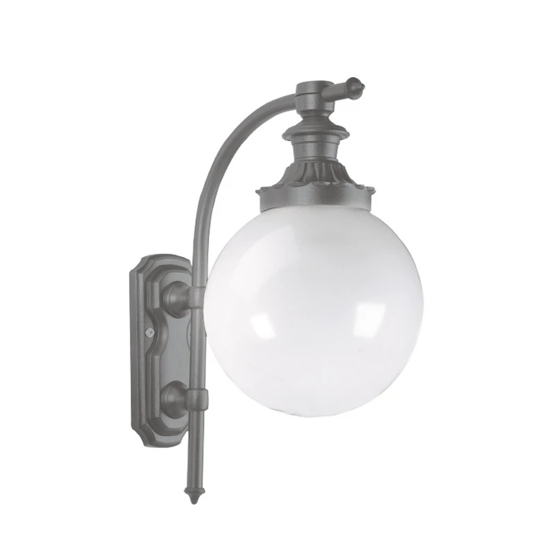 MADEIRA - όμορφο εξωτερικό φωτιστικό τοίχου σε σφαιρικό σχήμα Το εξωτερικό φωτιστικό τοίχου Madeira με ακρυλική γυάλινη σφαίρα βασίζεται σε ένα κλασικό, κομψό σχέδιο. Η βάση του φωτιστικού από χυτοπρεσσαριστό αλουμίνιο είναι βαμμένη σε διακριτική καφέ απόχρωση. Η λευκή ακρυλική γυάλινη σφαιρική σφαίρα παρέχει φωτεινό φωτισμό χωρίς αντανάκλαση για εξωτερικούς χώρους. Η Madeira είναι ιδανική δίπλα στην πόρτα της εισόδου και μπορεί να συνδυαστεί κομψά με άλλα φωτιστικά της σειράς Madeira.