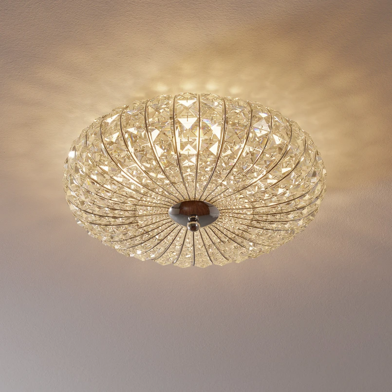 Κομψό φωτιστικό οροφής Broche λάμπει και αστράφτει χάρη στα πολλά κρύσταλλα Αν δεν θέλετε να στερηθείτε κάτι πολύ ιδιαίτερο στο σαλόνι σας, μπορείτε να καταφύγετε στο λαμπερό φωτιστικό οροφής Broche. Αποτελείται από ένα στρογγυλό φωτιστικό που έχει τοποθετηθεί με πολυάριθμα κρύσταλλα σε διάφορα μεγέθη. Όταν το φως είναι αναμμένο, το Broche αρχίζει να αστράφτει και να λάμπει καθώς το φως διαθλάται πολλές φορές και τα κρύσταλλα αντανακλούν το ένα το άλλο. Αυτό δημιουργεί υπέροχες στιγμές φωτός που δημιουργούν μια ζεστή ατμόσφαιρα. Αυτό το υπέροχο φωτιστικό τραβάει την προσοχή όλων και κάνει πάντα μια ωραία φιγούρα