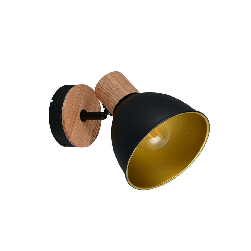 Φωτιστικό οροφής Delume, μαύρο, Ø 15 cm, 1 φως, μέταλλο/ξύλο