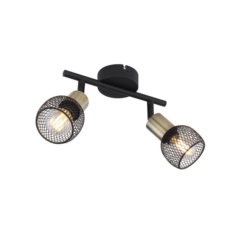Φωτιστικό οροφής Fiastra, μαύρο/παλιακό ορείχαλκο 2-φωτο.