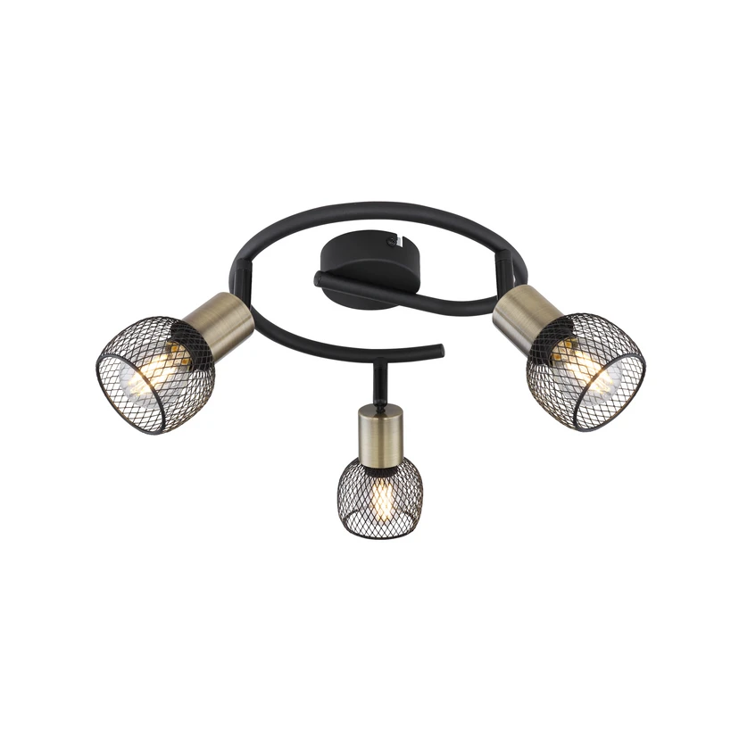 Φωτιστικό οροφής Fiastra, μαύρο/παλιακό ορείχαλκο 3-φωτο.