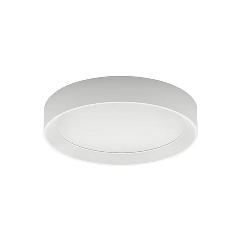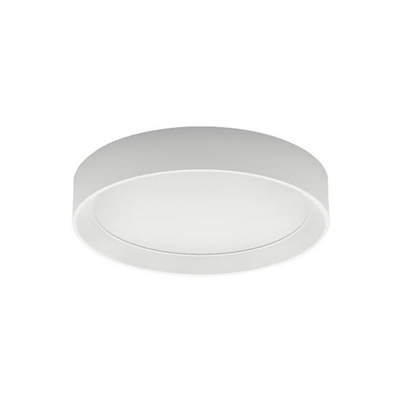 Φωτιστικό οροφής LED Tara R ως λευκός κύκλος Το εσωτερικό του φωτιστικού οροφής Tara R, το οποίο φαίνεται απλό εξωτερικά, κρύβει ισχυρές λυχνίες LED, η φωτεινή απόδοση των οποίων εξασφαλίζει αποτελεσματικό φωτισμό ακόμη και σε χώρους με ψηλά ταβάνια. Το Tara R έχει σχεδιαστεί ως ένας απλός κύκλος που ορίζεται από ένα πλαίσιο σε σχήμα δακτυλίου από λευκό λακαρισμένο αλουμίνιο. Αυτό πλαισιώνει έναν διαχύτη από λευκό πολυκαρβονικό, ο οποίος εκπέμπει το ζεστό λευκό φως LED ως ομοιόμορφο άμεσο φωτισμό με τη μορφή στρογγυλής επιφάνειας με κατεύθυνση προς τα κάτω.