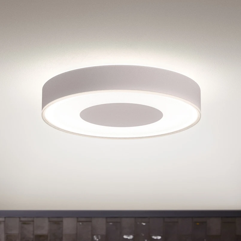Philips Hue Xamento LED φωτιστικό οροφής - έξυπνο ελεγχόμενο, πολύχρωμο φως Απλός σχεδιασμός σε συνδυασμό με μοντέρνα λειτουργικότητα και προηγμένες επιλογές ελέγχου - το στρογγυλό φωτιστικό οροφής LED Xamento είναι η έξυπνη επιλογή για μοντέρνα σαλόνια και μπάνια. Χάρη στα ενσωματωμένα LED με τεχνολογία White και Color Ambiance, προσφέρει έγχρωμο και λευκό φως σε αμέτρητες αποχρώσεις οποιασδήποτε φωτεινότητας. Όχι μόνο το φως, αλλά και η δυνατότητα ελέγχου είναι απολύτως μεταβλητή. Το Xamento μπορεί να ενεργοποιηθεί και να ρυθμιστεί με τον διακόπτη ροοστάτη Hue (βλ. αξεσουάρ) και να μεταβεί σε προκαθορισμένες σκηνές φωτισμού. Ο άμεσος έλεγχος με smartphone/tablet είναι δυνατός μέσω Bluetooth- η εφαρμογή Hue Bluetooth επιτρέπει επίσης τον ελεύθερο έλεγχο του χρώματος του φωτός. Οι τεράστιες δυνατότητες ελέγχου του έξυπνου φωτισμού ανοίγονται με την ενσωμάτωση ZigBee με τη χρήση της γέφυρας Hue Bridge (βλ. αξεσουάρ): Ο τηλεχειρισμός μέσω εφαρμογής, η σύνδεση με άλλα έξυπνα φωτιστικά, ο αυτοματισμός ή ο φωνητικός έλεγχος μπορούν να ρυθμιστούν ανάλογα με τις προτιμήσεις. Ειδικά χαρακτηριστικά / συμβατότητα - Κατηγορία προστασίας: IP44 - Ρυθμιζόμενο φως (μέσω εφαρμογής, διακόπτη ροοστάτη (δεν περιλαμβάνεται) ή φωνητικής εντολής) - Ρυθμιζόμενο χρώμα φωτός (ζεστό λευκό έως φως ημέρας, 16 εκατομμύρια χρωματικές αποχρώσεις) - Συμβατό με την εφαρμογή Hue Bluetooth. χρωματικές διαβαθμίσεις) - συμβατό με το υπάρχον σύστημα Philips Hue - ελέγξιμο με την κατάλληλη εφαρμογή Hue (σε συνδυασμό με το Hue Bridge) και την εφαρμογή Hue Bluetooth (απευθείας με smartphone/tablet) - συμβατό με άλλα συστήματα που βασίζονται στο ZigBee, όπως Innogy, Bosch, Magenta (Telekom) και Busch-Jäger - επιλογή έξυπνου ελέγχου φωτισμού α: Ενσωμάτωση ZigBee μέσω γέφυρας και δρομολογητή, όπως η γέφυρα Philips Hue Bridge (βλ. αξεσουάρ)- αυτό επιτρέπει τον τοπικό ή απομακρυσμένο έλεγχο μέσω της εφαρμογής Hue και τη δυνατότητα φωνητικού ελέγχου μέσω Amazon Alexa, Apple HomeKit (Siri) και Google Assistant.