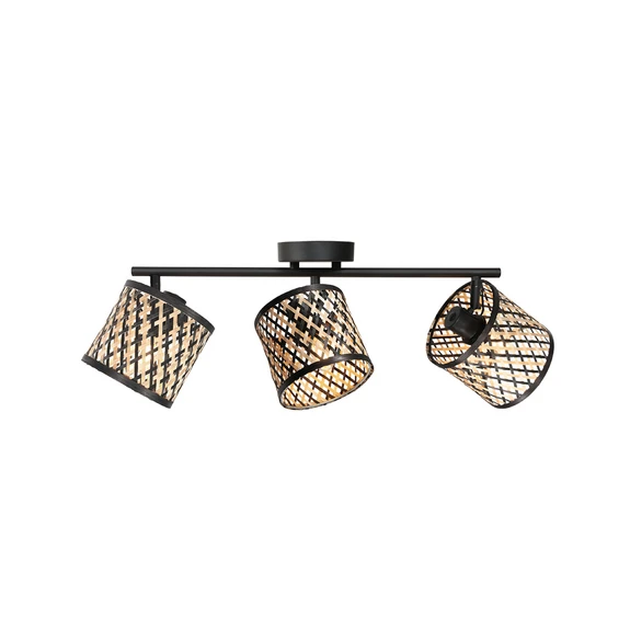 Φωτιστικό οροφής Sumba, 3 λάμπες, μαύρο, μπαμπού φυσικό/μαύρο, E14