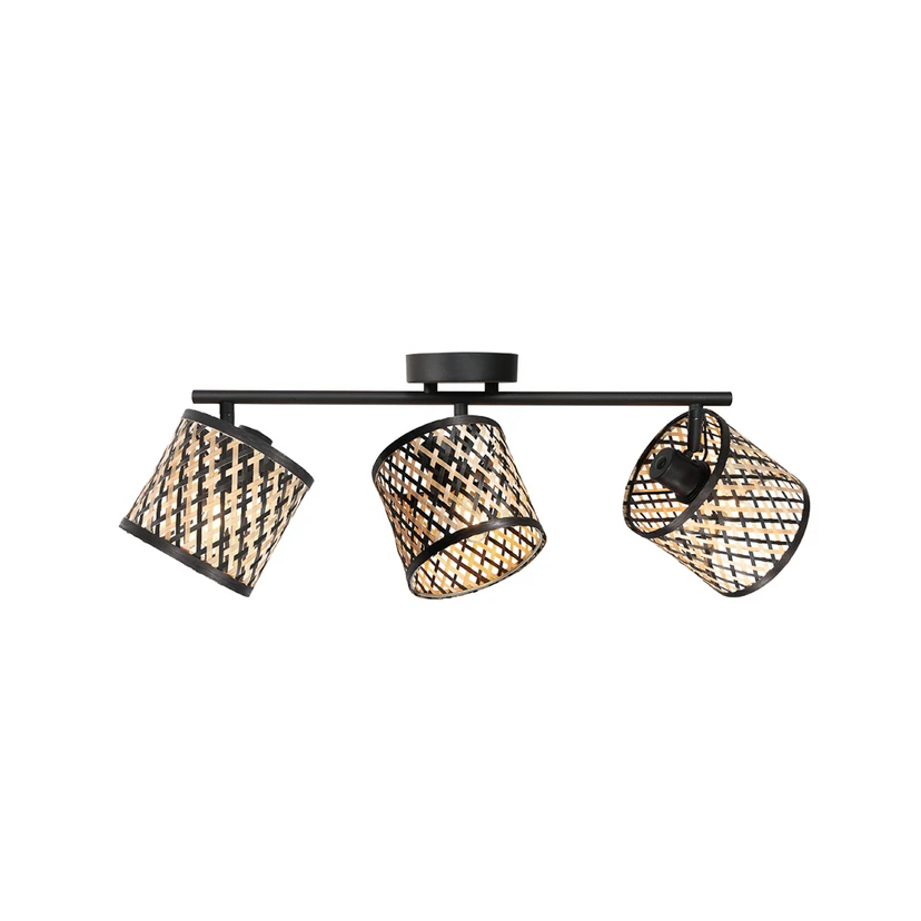Το τριπλό φωτιστικό οροφής Sumba συνδυάζει φυσικά υλικά με μοντέρνο σχεδιασμό. Η αντίθεση μεταξύ του ανοιχτόχρωμου και του μαύρου μπαμπού και του μαύρου μετάλλου προσδίδει στο μοντέλο μια διαχρονική κομψότητα, που εντυπωσιάζει σε διάφορους χώρους, όπως το σαλόνι, την κρεβατοκάμαρα ή το διάδρομο. Τα τρία καλύμματα μπορούν να περιστραφούν και να γείρουν και είναι εξοπλισμένα με υποδοχές E14, στις οποίες μπορούν να τοποθετηθούν λαμπτήρες της επιλογής σας (3 x μέγ. 40 W).