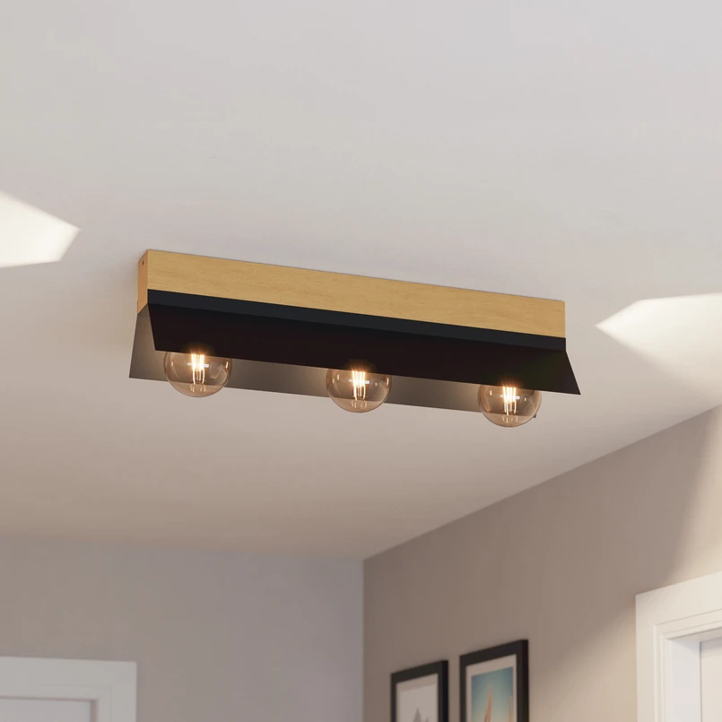 Φωτιστικό οροφής Tarrafo μαύρο, φυσικό ξύλο, 3-light