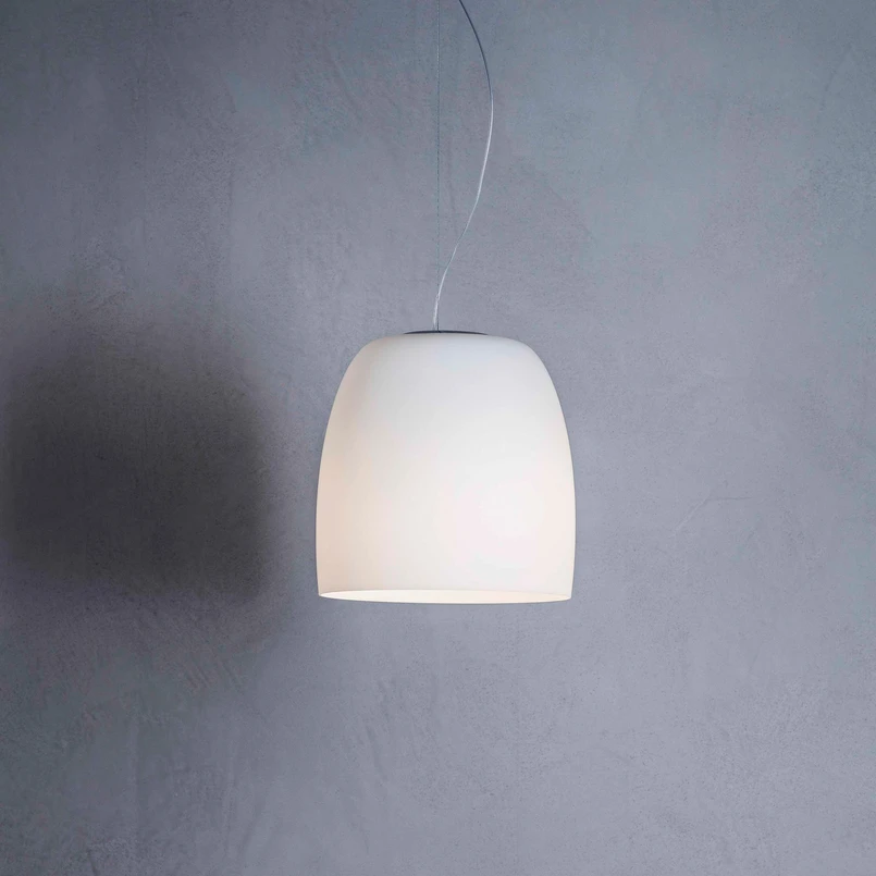 Γυάλινο κρεμαστό φωτιστικό Notte S5 σε κυρτό κυλινδρικό σχήμα Το μονόφωτο κρεμαστό φωτιστικό Notte S5 εντυπωσιάζει με τον αρμονικό σχεδιασμό του και τις ευέλικτες επιλογές συνδυασμών. Κατασκευάζεται από φυσητό γυαλί στην Ιταλία. Είτε εγκατασταθεί μεμονωμένα είτε σε ομάδα, δεν κάνει μόνο μια εξαιρετική εικόνα σε ιδιωτικούς χώρους διαβίωσης, αλλά δημιουργεί επίσης ένα πραγματικό wow effect σε ξενοδοχεία και εστιατόρια. Καθώς το σκίαστρο είναι ανοιχτό στο κάτω μέρος και το φως λάμπει απευθείας, το φωτιστικό Notte είναι ιδανικό για το φωτισμό ενός τραπεζιού ή ενός πάγκου. Μια υποδοχή E27 είναι ενσωματωμένη στο κάλυμμα του φωτιστικού- μια κατάλληλη πηγή φωτός μπορεί να αγοραστεί από τα αξεσουάρ, εάν απαιτείται. Ο ιταλικός κατασκευαστής φωτιστικών Prandina ιδρύθηκε το 1982 από τον Sergio Prandina. Πολλές από τις δημιουργίες των φωτιστικών χαρακτηρίζονται από τα φυσητά γυάλινα καλύμματα που φουσκώνουν στο χέρι. Σε συνεργασία με διάσημους σχεδιαστές και αρχιτέκτονες εσωτερικών χώρων, δημιουργούνται τακτικά ελκυστικά σχέδια που υλοποιούνται ως αισθητικά και ποιοτικά πειστικά φωτιστικά σώματα.