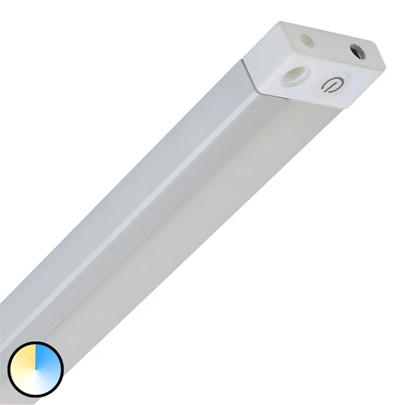 Cassia Sensor Switch Tone - Φωτιστικό LED κάτω από το ντουλάπι με αισθητήρα Το επίπεδο φωτιστικό LED κάτω από το ντουλάπι Cassia Sensor Switch Tone προσφέρει φως σε τρία επιλέξιμα χρώματα φωτός: ζεστό λευκό φως για άνετα δείπνα, λευκό φως γενικής χρήσης και φως στο χρώμα της ημέρας για εργασία και μαγείρεμα. Το χρώμα του φωτός μπορεί να ρυθμιστεί με αισθητήρα αφής και μια λειτουργία μνήμης αποθηκεύει το τελευταίο επιλεγμένο χρώμα φωτός. Το φως ενεργοποιείται και απενεργοποιείται με τον ενσωματωμένο αισθητήρα κίνησης, ο οποίος μπορεί επίσης να χρησιμοποιηθεί για τη ρύθμιση της φωτεινότητας. Μια κίνηση σκουπίσματος ενεργοποιεί και απενεργοποιεί το φως, ενώ κρατώντας το χέρι σας κάτω από τον αισθητήρα ξεκινά η διαδικασία εξασθένισης. Το Cassia Sensor Switch Tone είναι ένα φωτιστικό για χρήση κάτω από το ντουλάπι που εντυπωσιάζει με τον επίπεδο σχεδιασμό και την υψηλή ποιότητα εκτός από τις ευέλικτες επιλογές ρύθμισης του φωτός. Συνδέεται μέσω του καλωδίου μήκους 150 cm με φις.