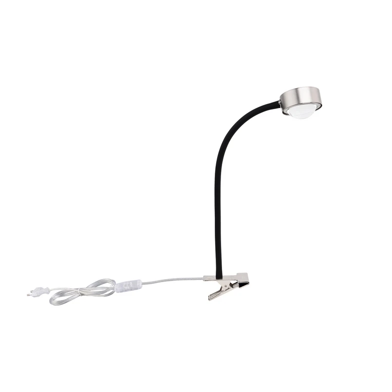 Φωτιστικό σφιγκτήρα Jyla σε χρώμα νικελίου με ασορτί λαμπτήρα GX53 Το φωτιστικό σφιγκτήρα Jyla είναι μια πρακτική προσθήκη για εσωτερική χρήση. Μπορεί να στερεωθεί σε τραπέζια, για παράδειγμα, και να αποτελέσει μια προσθήκη στο γενικό φωτισμό του χώρου. Παρέχεται επίσης με την αντίστοιχη πηγή φωτός GX53, η οποία παράγει καθολικό λευκό φωτισμό και μπορεί να ρυθμιστεί σε τρία στάδια. Η παρεχόμενη πηγή φωτός GX53 έχει καμπυλωτό φακό και επομένως μοιάζει με γυάλινο ημισφαίριο. Ένας διακόπτης επιτρέπει την ενεργοποίηση και απενεργοποίηση της πηγής φωτός ως συνήθως. Χάρη στην τεχνολογία εξασθένισης 3 σταδίων με ενσωματωμένη λειτουργία απενεργοποίησης, μπορεί επίσης να εξασθενίσει σε τρία διαφορετικά επίπεδα φωτεινότητας πατώντας αρκετές φορές τον διακόπτη: 100 %, 50 % και 25 %.