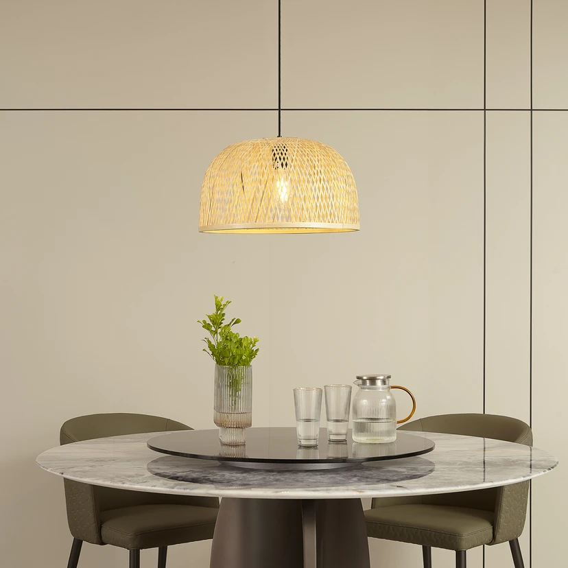 Μονόφωτη κρεμαστή λάμπα Dabila από μπαμπού με πλέγμα