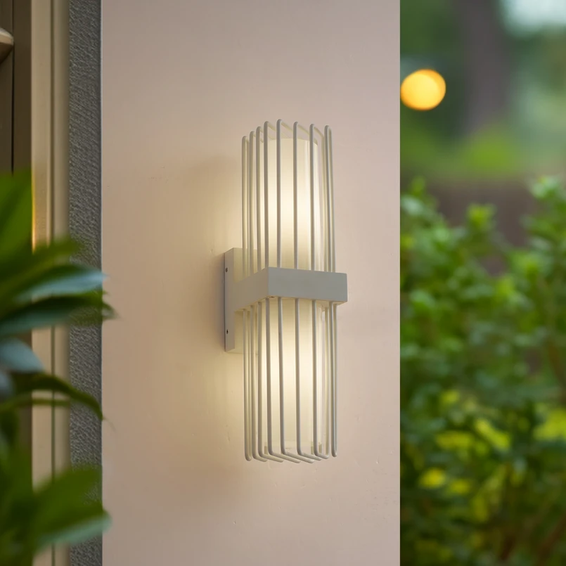 Εξωτερικό φωτιστικό τοίχου Chandan από αλουμίνιο και πλαστικό σε λευκό χρώμα