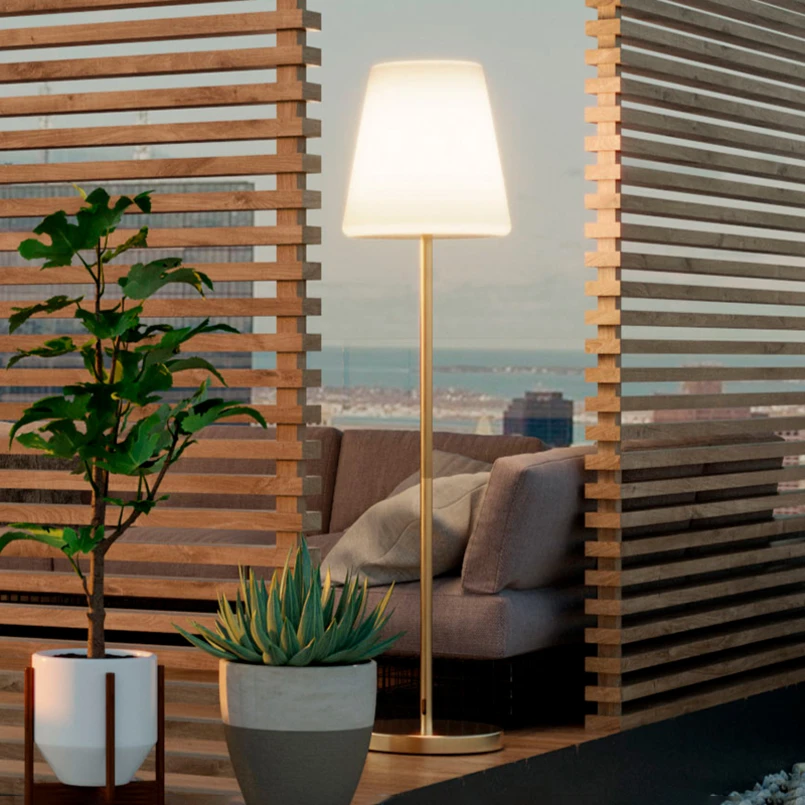 Φωτιστικό δαπέδου Lola Slim 180 LED για εσωτερική και εξωτερική χρήση Το φωτιστικό δαπέδου Lola Slim 180 LED είναι κατάλληλο τόσο για βεράντες όσο και για εσωτερικούς χώρους. Αποτελείται από έναν απλό, λακαρισμένο σιδερένιο σκελετό και ένα κωνικό κάλυμμα από πολυαιθυλένιο, ένα υλικό που αντέχει τόσο στις ακραίες θερμοκρασίες όσο και στην υπεριώδη ακτινοβολία. Κατασκευασμένο στην Ισπανία, το φωτιστικό παρέχεται με τηλεχειριστήριο και πηγή φωτός με δυνατότητα ρύθμισης του φωτός με ρυθμιζόμενο χρώμα. Το φάσμα των ρυθμιζόμενων χρωμάτων φωτός κυμαίνεται από ζεστό λευκό φωτισμό (2.700 K) έως φως ημέρας (6.500 K), ενώ το φως είναι απείρως ρυθμιζόμενο σε οποιοδήποτε επιλεγμένο χρώμα φωτός. Το ημιδιαφανές σκίαστρο εκπέμπει το φως σε γωνία δέσμης 200°. Το φωτιστικό δαπέδου μπορεί να χρησιμοποιηθεί σε θερμοκρασίες περιβάλλοντος από -20 έως 45° C. Ένα καλώδιο μήκους 4 μέτρων με βύσμα Schuko δίνει στο φωτιστικό μεγάλη ακτίνα λειτουργίας, ενώ ο ευέλικτα ρυθμιζόμενος φωτισμός εξασφαλίζει το σωστό φως για κάθε περίσταση.