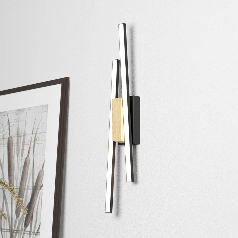 Εμφάνιση περισσότερων εικόνων Panagria LED φωτιστικό τοίχου, μαύρο με ξύλινη λεπτομέρεια