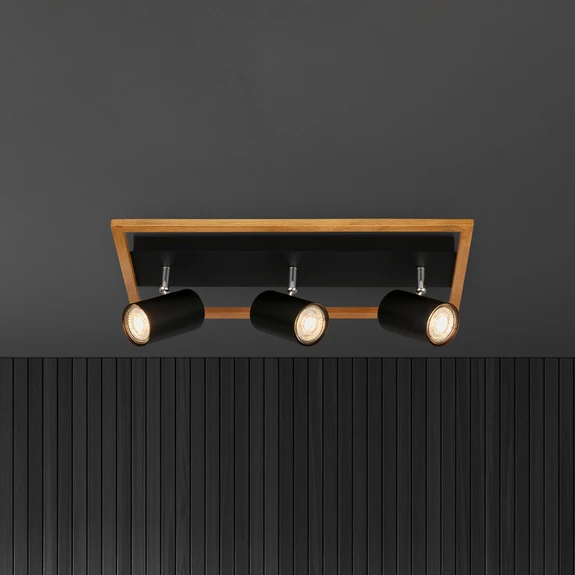 Spot οροφής Frey ξύλινο πλαίσιο GU10 μαύρο 3-φλόγα